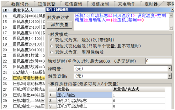 以上只是GRM200一个简单的逻辑应用,实际上利用GRM200可以实现非常复杂的逻辑功能,下图是利用GRM200的逻辑功能实现的一个3机头风冷空调的温度控制实例!