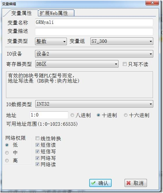 1. 使用 GRM500 工程配置软件 GRM Developer 完成 GRM500G 的工程开发和下载,如配置需要远程监控的变量,及对应的 PLC 寄存器地址。