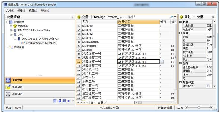 4.使用组态软件开发工程,将组态软件的变量关联到对应的OPC寄存器。