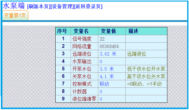 1、水池液位实时通过服务器传送给水泵端的 GRM200模块,水泵端控制模块自带的逻辑控制功能,能依据水位高低,自动控制水泵的启停,无需另外配置plc。