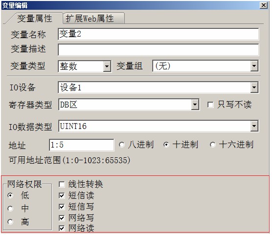 此外针对云端访问的PLC每个寄存器,均具备三级高中低权限密码,并可以选择是否允许网络读写,如果完全禁止网络写和短信写,可以从物理层之间阻止外部对PLC该寄存器的写操作。 如果希望针对不同的变量的读写使用不同权限,比如网页用低权限密码登陆时,只能看变量,而不能写变量,用中权限才能写变量时,也可以轻松做到。
