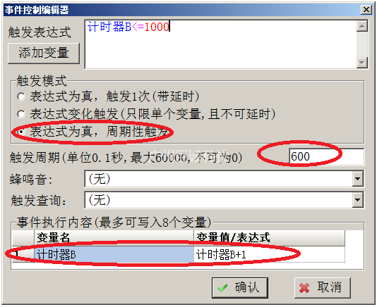 B模块,建立一个内部变量,假设变量名为计时器B,并利用模块的事件控制每分钟加1。