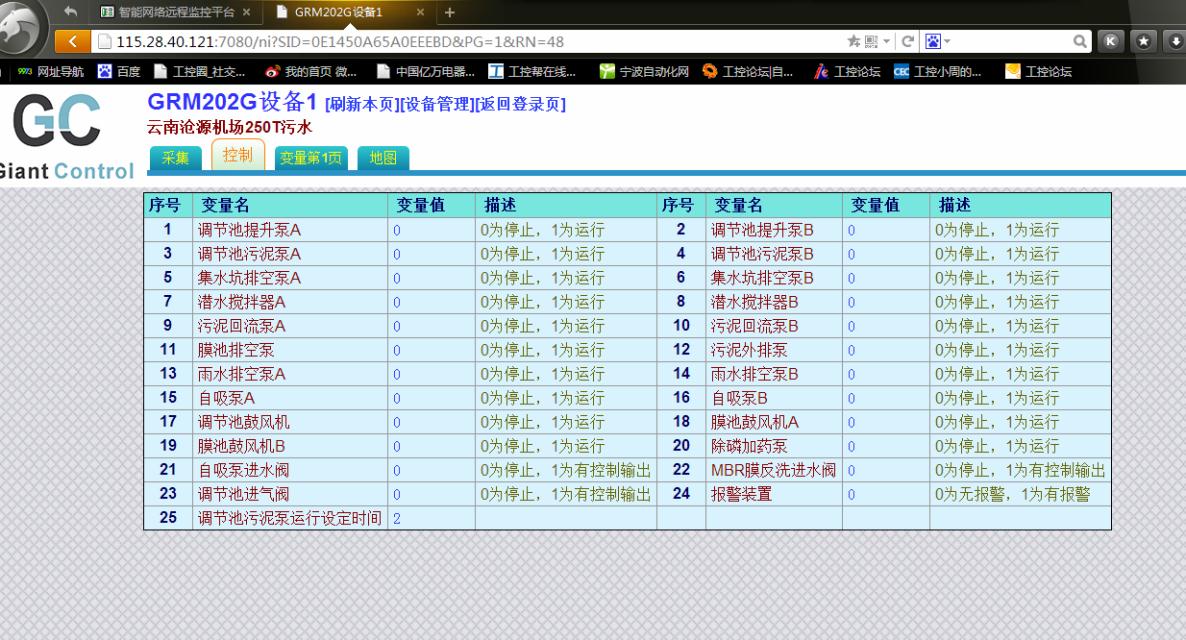 云南沧源机场250T污水项目,远程监控模块是 巨控的GRM202G-C,PLC是西门子S7-200,实现的远程功能包括:组态软件远程OPC监控PLC,电脑手机网页远程监控PLC,短信远程控制PLC,短信实时报警通知。