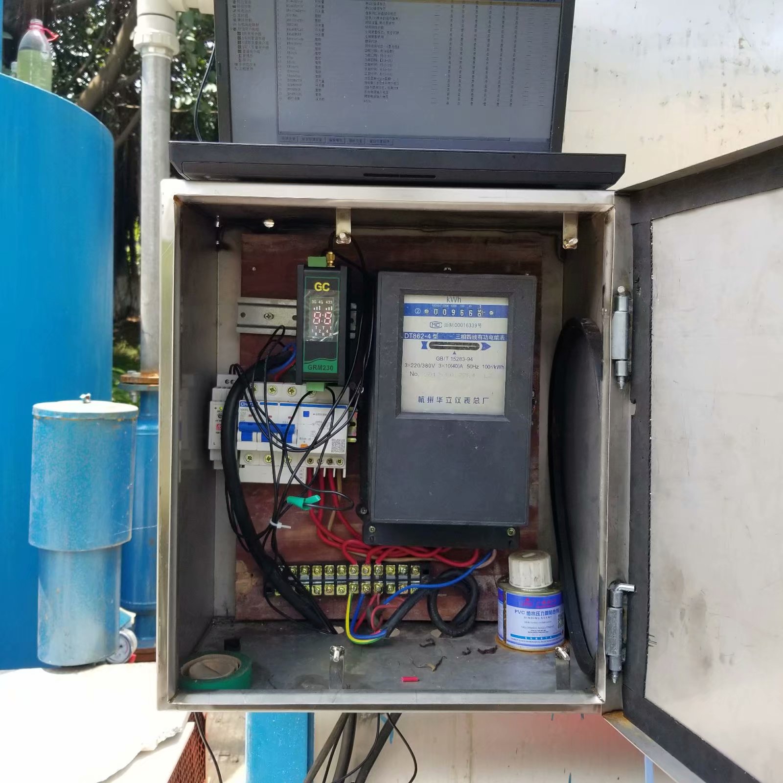 农村污水一体化设备安装 巨控GRM230直接采集仪表数据,可以实现瞬时流量,累计流量,COD、提升水泵工作状态、曝气泵工作状态、电表值、水表值、视频监控。