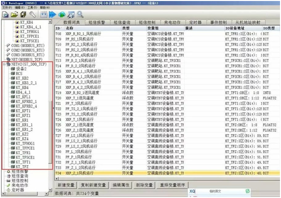 本次项目中国科学院高能物理研究所水冷和空调系统以及电力系统是用西门子 PLC 控制,现场总共接了 22 台 S7-300 PLC , 19 台触摸屏 , 6 台工控机, 2 台 广州巨控 GRM500 。其中一台 GRM500 通过 S7-300 TCP 协议采集 16 台 PLC 数据,另外一台 GRM500 通过网口采集 6 台 S7-300 PLC 协议,并且通过 MODBUS TCP 协议采集四方通讯机的电力系统数据,同时利用 GRM500 自带的逻辑功能,把电力系统数据写入其中一台 S7-300PLC ,系统通过 3G 无线网络联网,实现做无线远程监控和故障短信报警功能。