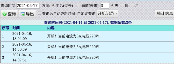 除了定时历史记录数据,我们可以用这个短信报警来触发记录,比如电机开关机记录,每天累计流量记录信息,然后分类查询显示