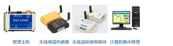 管理报警主机(1台),高精度无线测温传感器(-50度---+150度),无线温度接收模块,计算机集中管理软件(选配)