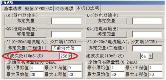 1:加大模拟量滤波次数,由64次改为256次,巨控采用均匀平滑滤波,可以有效减少随机信号干扰。