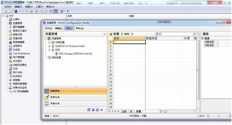 4.使用组态软件开发工程,将组态软件的变量关联到对应的OPC寄存器。