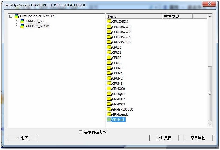 3.使用控GrmOpcServer软件包中的GRM OPC管理器配置监控端,并刷新设备,将GRM500G的变量更新到本地OPC服务器。
