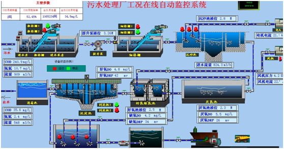 无线远程集中监控系统中控系统建设及联网方案采用无线 GPRS通讯技术,将分散在不同地点的设备运行数据、参数如水位、风机、水泵、回流泵、提升泵等反馈信号远程采集传输到中央控制室,使管理人员可以实时监视供水系统运行情况数据,同时可以对现场设备如风机、回流泵、提升泵、水泵的开关进行远程控制,起到了既能实时监测,又能实时控制的目的,提高了供水系统的自动化管理程度。