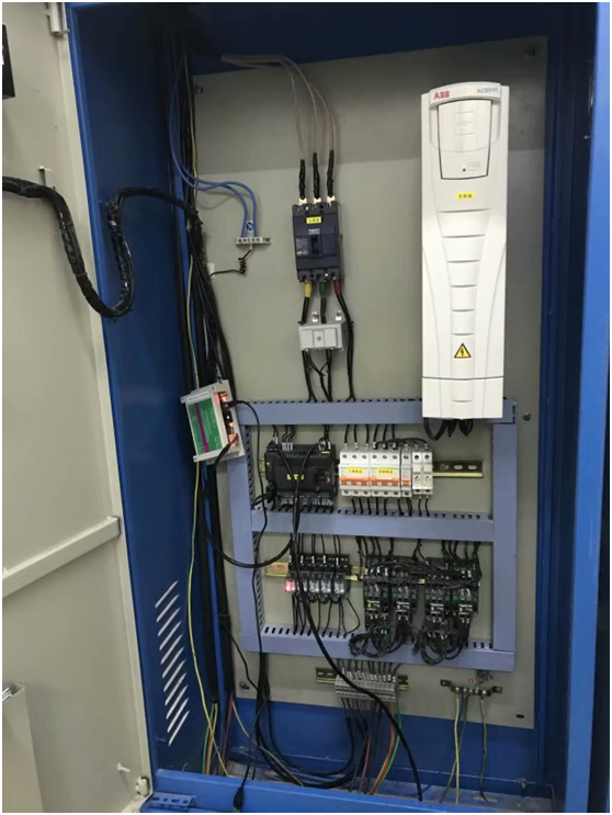 下为供水站点加装巨控 GRM200 现场图片,恒压供水系统的控制系统为北京博格朗公司变频供水控制器,现场三个控制柜,分别对应高中低楼层分区供水。三个控制柜通过加装一个 GRM200 模块,实现和监控中心的远程通讯。供水系统在地下三层,通过 40M 长的 GSM 天线,将信号引入到地库。
