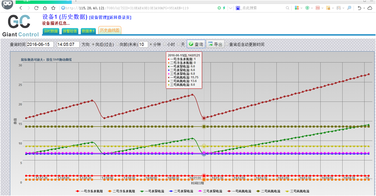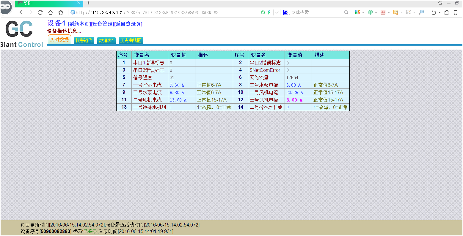 4、通过网页可以实时查看当前电机电流值和故障状态,并且可以设置每个传感器报警上下限值。