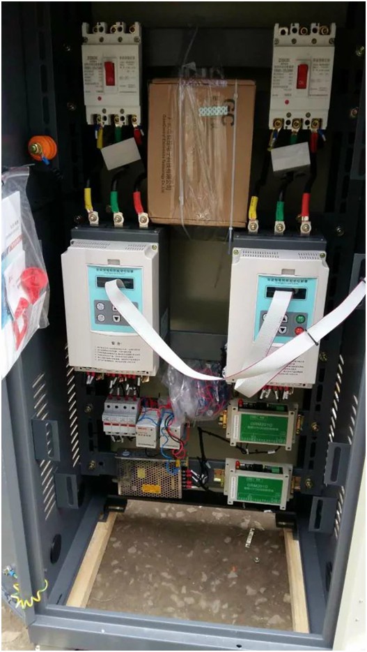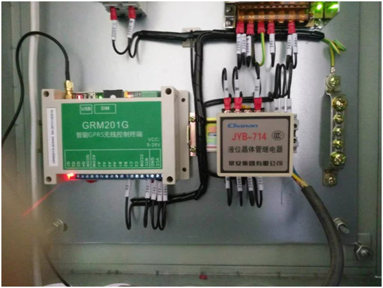 湖北荆州沙洋县拾桥镇自来水供水泵站远程控制改造,供水泵站原有水泵控制为星三角启动,采用人工手动开启。泵站距离水厂路程20KM左右。现利用 巨控的GPRS无线终端改为液位—水泵联动自动控制方式。启动方式依旧为星三角启动,但是星三角改为手动/远程切换,利用巨控模块的无线数据交换功能,在自动控制时,水泵控制端的GPRS控制终端通过无线接收水池端的液位信号,液位低的时候,自动启泵,液位高的时候停泵。也可以远程强制启泵和关泵。系统设置远程停机检修开关,停机检修时锁定远程关闭。