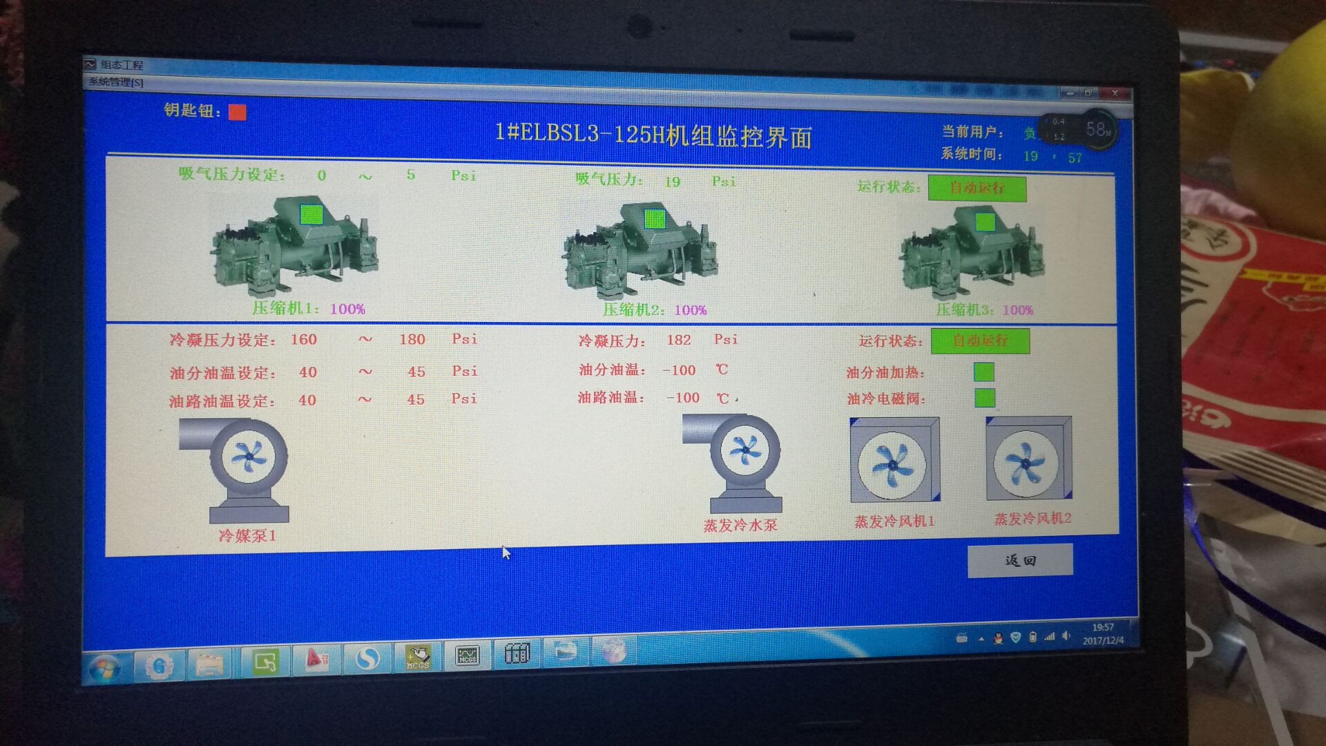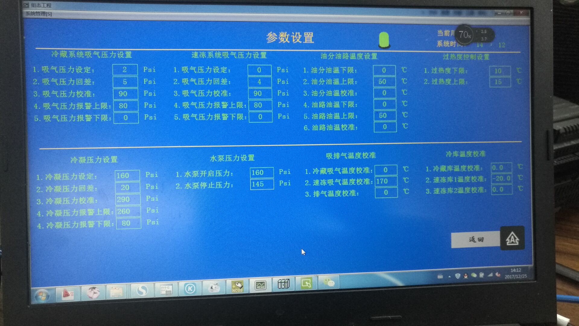 无人值守的肉品冷库制冷机组使用 广州巨控 GRM200 手机app监控,故障短信报警,电脑网页监控,上位机昆仑通态组态软件监控。