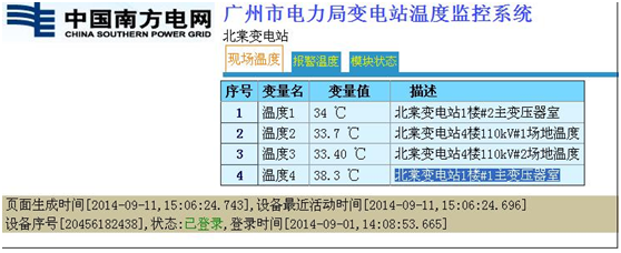 功能要求:1:通过手机网页可以随时浏览到变电站1楼1#主变,2#主变,四楼110KV场地的温度