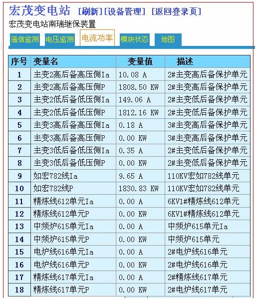 功能要求:1:通过手机网页可以随时浏览到主变,各生产线,电炉等电压,电流,功率,分合闸状态