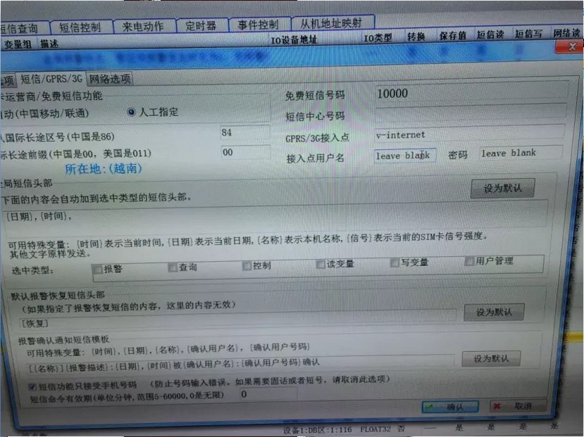 生产光伏组件产品越南分公司,使用西门子S7-1200 PLC,实现定时发送短信,报警发送短信,组态王远程监控,及网页监控。项目使用GRM500模块与S7-1200 PLC通过以太网通讯。PLC当前IP为:192.168.0.1