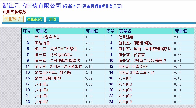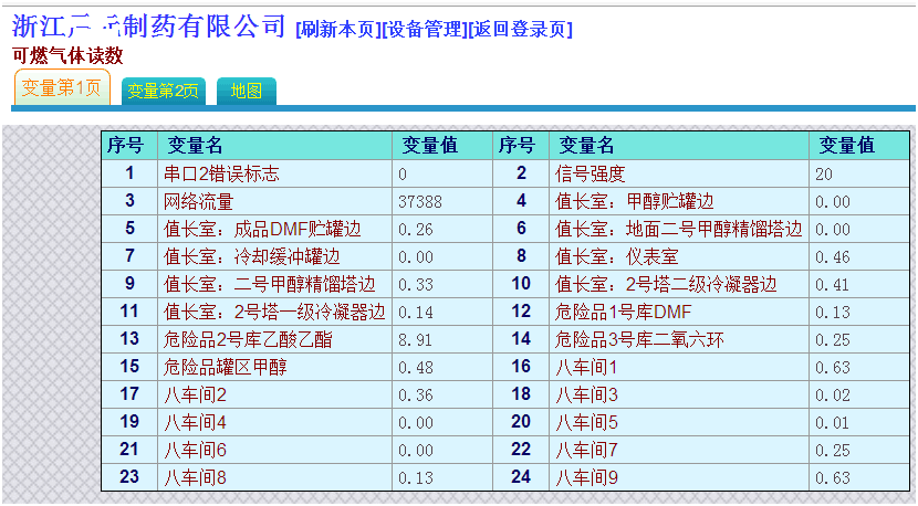 某制药公司因为工厂内可燃气体种类多,且分布在厂区内多个位置,需要安装一套厂区总体气体浓度监控系统,对各个有可燃气体的区域的气体浓度进行监控。监控系统要求能实时查看各个车间各个生产环节的可燃气体浓度,当气体浓度超标需要及时报警,防止发生安全事故。
