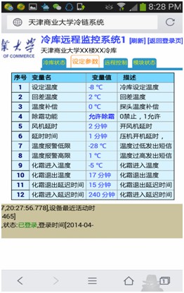 9、系统操作面板实时显示当前库温,设置参数有报警温度上下限、修正温度、 报警死区、布防/撤防。