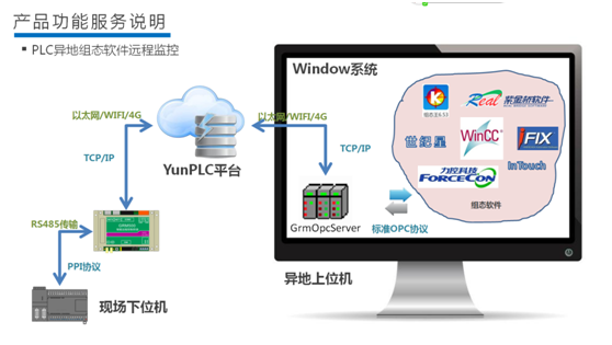 3、具有远端OPC客户端组态软件网络监控和操作PLC功能;